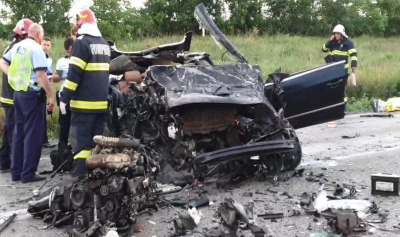 Două persoane din autoturism au fost declarate decedate.