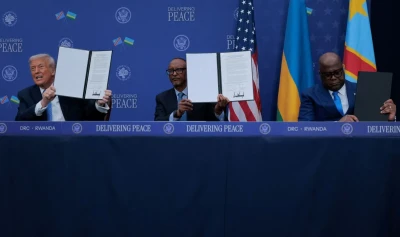 Preşedintele american Donald Trump a prezidat joi, la Washington, o ceremonie de semnare a unui acord de pace cu omologii săi congolez şi rwandez. într-o clădire redenumită în onoarea sa, vorbind despre o ”minune”, în timp ce confruntări armate intense continuă în estul Republicii Congo, relatează AFP, potrivit news.ro.