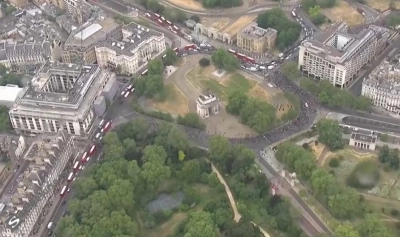 Zeci de mii de persoane s-au adunat, miercuri după-amiază, în centrul Londrei pentru a protesta faţă de moartea afro-americanului George Floyd în Statele Unite, relatează agenţia de presă Reuters.