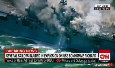 Televiziuni americane au difuzat imagini cu un fum gros deasupra navei de asalt amfibie USS Bonhomme Richard, care se afla la chei la baza navală San Diego, portul său de ataş, în vederea unor operaţiuni de mentenanţă.