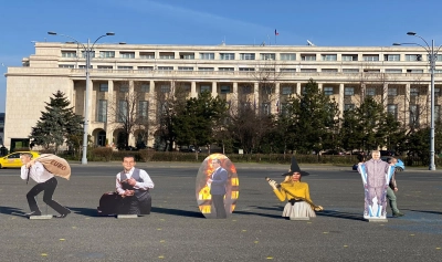 Tineretul PSD a făcut luni un protest în fața Palatului Victoria, unde a montat figurine caricaturale din carton cu membri ai coaliției de guvernare și președintele Klaus Iohannis, ținta ironiilor fiind bugetul pe 2021.