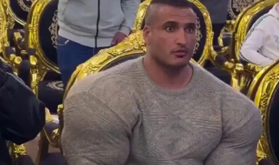 O gardă de corp musculoasă a devenit recent o senzație pe rețelele sociale din Egipt datorită brațelor sale enorme și capului disproporționat de mic, informează odditycentral.com.