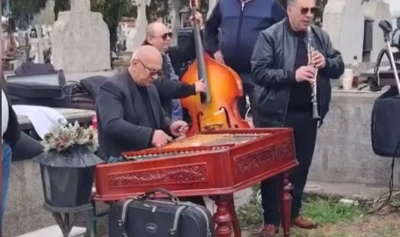 Un concert neobișnuit a avut loc într-un cimitir din Giurgiu, în ziua de Paști. Printre morminte, mai mulți oameni s-au adunat în jurul unor lăutari care au transformat cimitirul într-o scenă improvizată cu tot necesarul: țambal, contrabas, orgă, clarinet și solist.