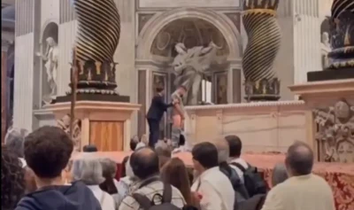 Un incident șocant a avut loc, vineri dimineață, ieri dimineață în Bazilica Sfântul Petru, de la Vatican. Un bărbat a reușit să se urce pe Altarul Mărturisirii și a urinat sub privirile uimite ale sutelor de turiști, informează IlTempo.