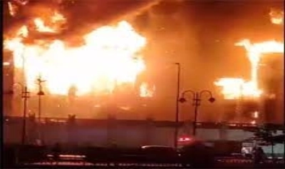 Doi martori au declarat pentru Reuters că au fost trimise maşini de pompieri la faţa locului, dar păreau să aibă dificultăţi în a stăpâni incendiul. Nu se ştie dacă există victime.