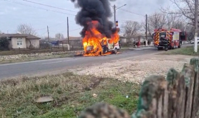 Reprezentanţii Inspectoratului pentru Situaţii de Urgenţă Dobrogea au anunţat că pompierii au fost sesizaţi, vineri, despre faptul că o ambulanţă privată care transporta o persoană la dializă a luat foc la intrarea în Cuza Vodă.