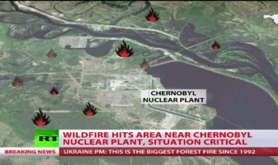 Ministrul de Interne al Ucraieni, Arsen Avakov, spune ca sunt circa 400 de hectare de padure în pericol să ardă în apropiere de resturile centralei nucleare de la Cernobîl. Premierul Ucrainei a mers la fața locului, a spus ca situatia este sub control si ca este "cel mai mare incendiu de dupa 1992".