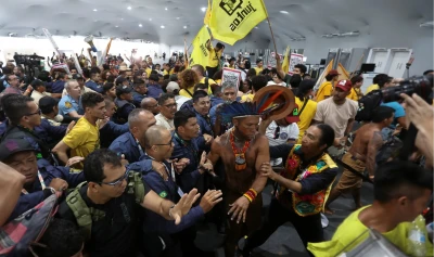 Aceştia făceau parte dintr-un grup de sute de persoane care au mărşăluit marţi către locul de desfăşurare a conferinţei climatice COP90 care este găzduită de oraşul Belem, din Amazon, potrivit unui alt martor Reuters.