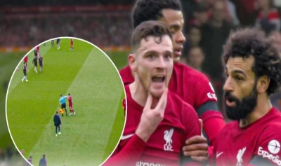 Unul din arbitrii de linie de la meciul FC Liverpool - Arsenal, care s-a disputat duminică în Premier League şi s-a încheiat la egalitate, scor 2-2, l-a lovit cu cotul pe Andrew Robertson, fundaşul stânga al gazdelor.