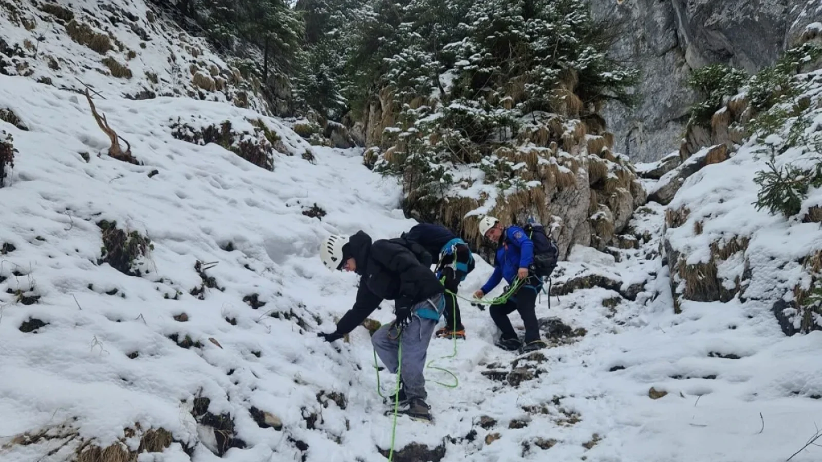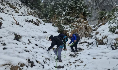 VIDEO Intervenție dificilă pentru recuperarea a doi turiști rămași blocați într-o zonă din Masivul Piatra Craiului