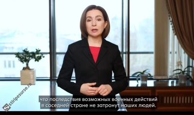 Preşedinta Republicii Moldova, Maia Sandu, s-a adresat luni cetăţenilor moldoveni în legătură cu situaţia din regiune, asigurându-i că autorităţile "sunt cu ochii pe Ucraina" şi îndemnându-i să rămână uniţi şi să nu se lase manipulaţi de propaganda care dezbină, relatează Deschide.md.