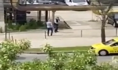Din imaginile surprinse de un amator se poate vedea cum cei doi bărbați au un conflict și se împing. Nici unul dintre ei nu este hotărât să atace.
