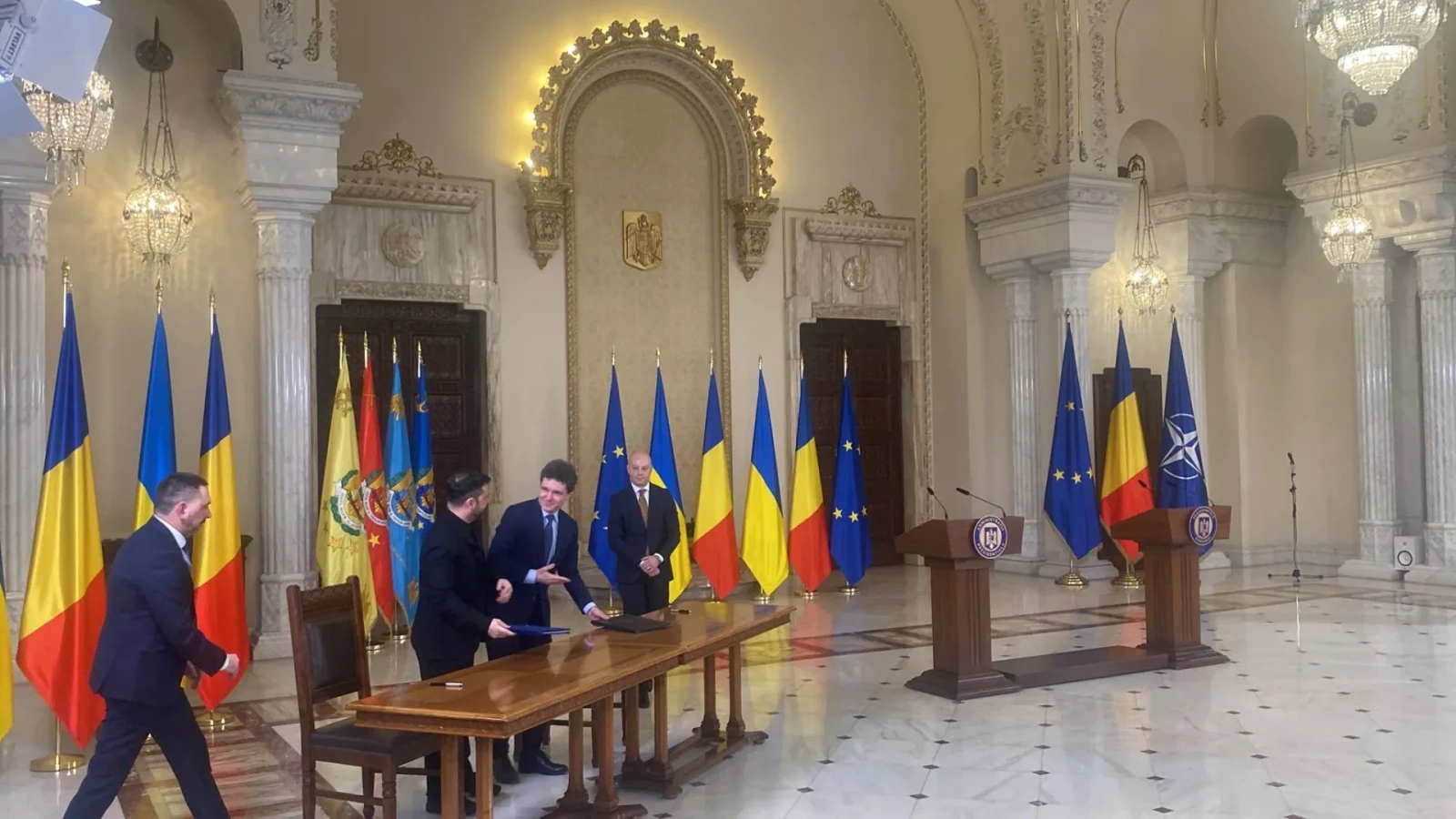 Președintele Nicușor Dan și Volodimir Zelenski au semnat, astăzi, mai multe documente care prevăd colaborarea dintre cele două state în domenii precum energie sau apărare.