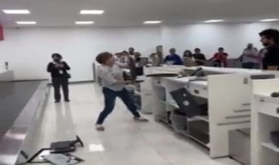 O femeie a fost filmată cu telefonul mobil în timp ce își ieșea din minți la ghișeul de bilete al Aeroportului Internațional din Mexico City, marți, când un angajat al companiei aeriene Volaris a informat-o că există o problemă cu rezervarea zborului său.