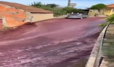 Un râu de peste 2,2 milioane de litri de vin roșu DOC potrivit pentru consum, a inundat străzile din São Lourenço do Bairro, în Anadia, Portugalia. În oraș funcționează două distilerii de vin, iar rezervoarele acestora au explodat concomitent, însă deocamdată nu se știe ce a condus la acest incident.