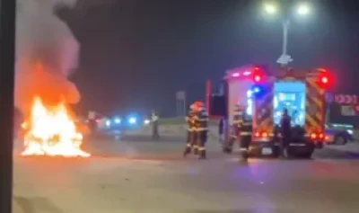 Un incendiu a izbucnit miercuri după-amiază la un autoturism aflat în sensul giratoriu din zona Auchan – ieșire spre Cumpăna, în municipiul Constanța. Flăcările au cuprins vehiculul în mers, iar fumul dens a fost vizibil de la distanță, alertând imediat trecătorii.