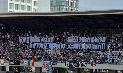 Galeria Universității Cluj este recunoscută ca fiind una naționalistă, notează Digi Sport. Crainicul a făcut și el un apel către fani pentru a înceta scandările.