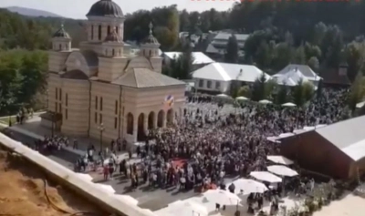 Patriarhul Daniel şi un sobor de preoţi au făcut, sâmbătă dimineaţă, slujba de sfinţire a noii biserici de zid de la Mănăstirea Izbuc, cea mai mare mănăstire de călugări din Episcopia Oradiei, care a fost construită şi înfrumuseţată în ultimii zece ani având ca model de inspiraţie Mănăstirea Cozia, scrie Agerpres.