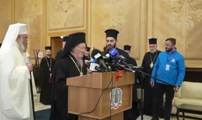 Patriarhul Ecumenic Bartolomeu I a sosit vineri în România, pentru a participa la sfințirea picturii Catedralei Naționale și la slujba de sărbătoare a Sfântului Dimitrie cel Nou, în contextul Centenarului Patriarhiei Române.
