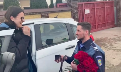 Un polițist de la Transporturi Neamț a avut, miercuri, nevoie de complicitatea colegilor de la Serviciul Rutier pentru a-i opri iubita în trafic, tot polițistă, ca să o ceară de soție, anunță Mediafax.