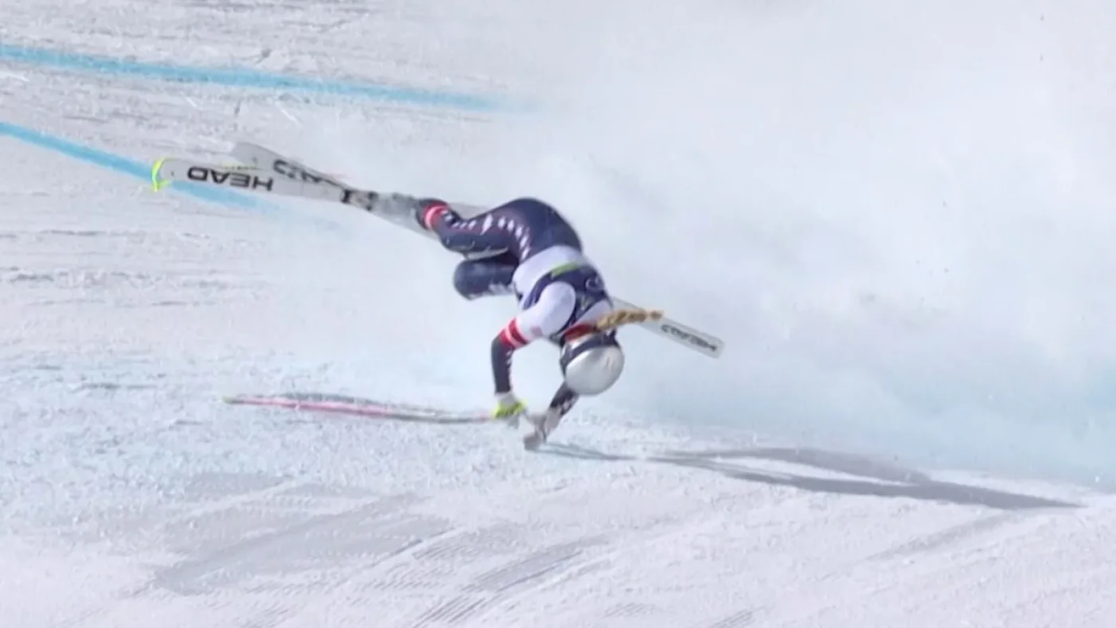 Sportiva în vârstă de 41 de ani a fost apoi transportată cu elicopterul de pe pârtia Olimpia delle Tofane, în timp ce publicul a aplaudat-o în picioare.