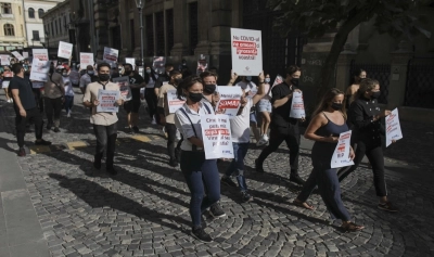 Acţiunea de protest a fost iniţiată de organizaţiile patronale din industria turismului pentru a-şi exprima nemulţumirea faţă de interdicţia autorităţilor privind deschiderea restaurantelor.