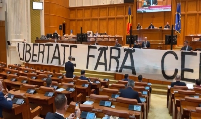 Scandal monstru în Parlamentul României, unde se dezbate certificatul verde. Mai mulți reprezentanți AUR au blocat prezidiul cu un banner uriaș pe care au scris: „Libertate fără certificate!”