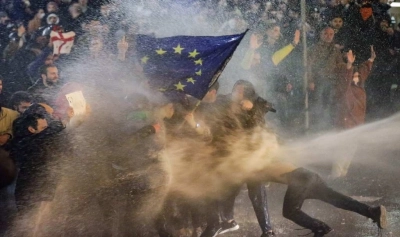 Poliția din capitala georgiană Tbilisi a folosit miercuri seara gaze lacrimogene și tunuri cu apă în încercarea de a dispersa protestatarii față legea privind „agenţii străini”, considerată de critici o derivă spre autoritarism, transmite Reuters.