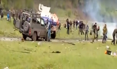 Unii dintre protestatari au aruncat cu pietre în ofiţerii de poliţie.