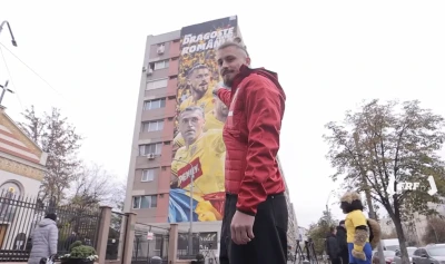 O pictură murală imensă pe un bloc din Bucureşti este dedicată echipei naţionale de fotbal, înfăţişându-i pe Radu Drăguşin, Andrei Raţiu şi Nicolae Stanciu, a anunţat, joi, FRF.