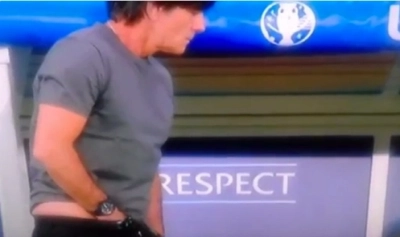Selecționerul Germaniei Joachim Low a oferit câteva imagini compromițătoare, la primul meci al Germaniei la Campionatul European din Franța. Low a fost surprins în timp ce se controla în pantaloni, de mai multe ori în timpul meciului.