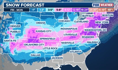 Conform Portalului de precipitații probabilistice al NWS, regiunile care ar putea înregistra peste 30 cm de zăpadă se întind de la Colorado la Virginia de Vest și până în nordul statului New York.