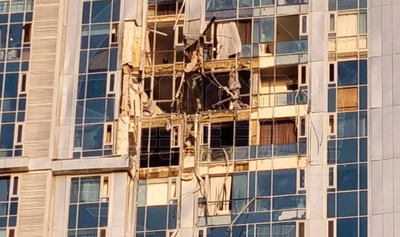 O înregistrare video postată pe Telegram de canalul rusesc de ştiri SHOT a arătat ceea ce a identificat ca fiind o clădire rezidenţială înaltă din Saratov, cu o latură avariată şi mai multe ferestre sparte pe trei etaje.