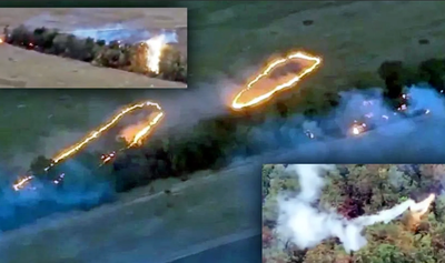 Un alt videoclip, care apăruse cu câteva zile mai devreme pe un canal Telegram, este şi mai impresionant. Acesta arată ceea ce pare a fi o dronă mică care zboară la altitudine foarte mică deasupra unei fâşii de pădure. După câteva secunde, aceasta revarsă un torent de flăcări, pe care le scuipă pe zeci de metri. A lăsat în urmă o dâră de lavă, care a provocat o explozie violentă printre copaci. Acest atac a fost geolocalizat în regiunea Zaporojie, într-o zonă aflată sub control rusesc, la trei kilometri de linia frontului.