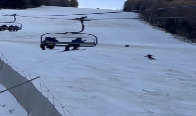 Turiştii prezenţi, sâmbătă, pe Pârtia Clăbucet din Predeal au surprins un schior urmărit de un urs, informează News.ro.
