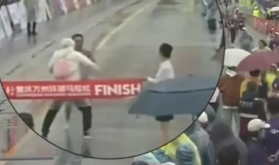 Gestul său imprudent i-a adus o suspendare severă. Un oficial chinez al maratonului din Chongqing Wanzhou, care credea că îl blochează duminică pe un alergător rătăcit, a fost suspendat un an pentru că, de fapt, l-a împiedicat pentru câteva secunde pe câştigătorul maratonului, Sheng Xueli, să treacă linia de sosire după 2 ore, 23 minute şi 52 de secunde de efort. Organizatorii îi reproşează, de fapt, că a „identificat incorect categoria” acestui atlet şi că a „blocat trecerea” maratonistului „care alerga normal în apropierea liniei de sosire”.