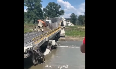 Un pod rutier s-a rupt, joi după amiază, în judeţul Neamţ, iar un autocamion şi o autoutilitară au fost surprinse în timp ce-l traversau.