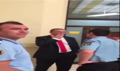 Pe imagini se poate observa că doi oameni ai legii se află lângă prefect, dar acesta îi ignoră cu desăvâșire, trăgând în continuare din țigară.