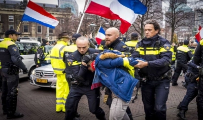 Aproximativ 150-200 de persoane au protestat în faţa sediului Guvernului Olandei, în cadrul unui miting neautorizat, scrie mediafax.ro.