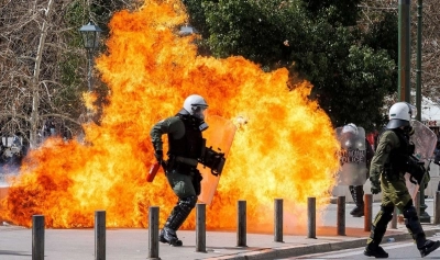 Un vehicul a fost incendiat lângă piaţa Syntagma, esplanada aflată mai jos de Parlament, în timp ce un arbust a luat foc în faţa clădirii Parlamentului şi a fost stins imediat de pompieri.