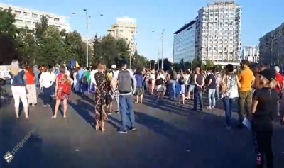 Pentru a patra seară consecutivă, zeci de persoane s-au adunat, miercuri, în Piața Victoriei. ”Opriți legea!”, scandează cei aproximativ 50 de oameni, care sunt dotați cu banner, vuvuzele, portavoce și steaguri tricolore. Ei sunt nemulțumiți de legea referitoare la carantinare și izolare, care urmează să fie votată în Senat.