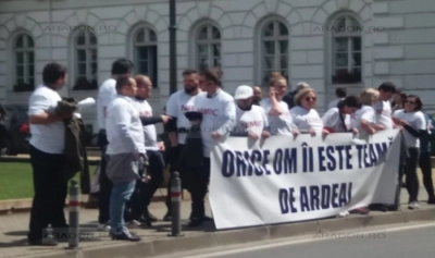 Premierul Viorica Dăncilă este aşteptată, vineri, la Arad de peste 100 de protestatari care scandează lozinci anti-PSD și care au afișat o pancartă mare cu mesajul „Orice om îi este teamă de Ardeal”. Un grup de susținători ai PSD aplaudă și strigă „PSD”, transmite Mediafax.