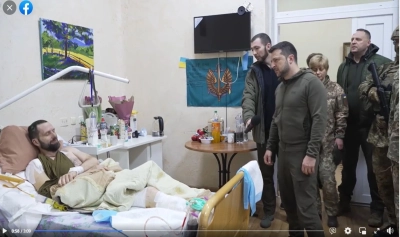 „Însănătoşire grabnică, băieţi!”, le-a urat conducătorul ucrainean. Zelenski a discutat cu soldaţii răniţi, cărora le-a transmis că cel mai bun cadou va fi "victoria". Preşedintele ucrainean i-a decorat pe soldaţii aflaţi pe patul de spital, dar şi pe reprezentanţi ai instituţiei medicale.